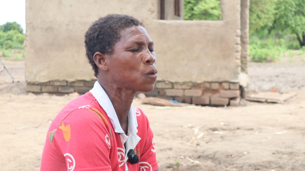 Ela perdeu a sua habitação e hoje vive com a família numa palhota precária, exposta ao frio, à chuva e ao perigo de animais selvagens provenientes do Parque Nacional da Gorongosa.